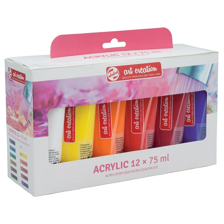 Talens Art Creation acrylics are made for artists who want both quality and flexibility. These paints are formulated with durable acrylic resin and have a thick, creamy texture that spreads smoothly and dries quickly to a subtle, satin-like sheen