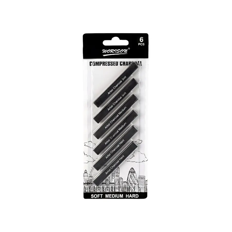 Crafted for artists who demand depth and drama in their work, Worison Compressed Charcoal delivers intense black tones with a smooth, velvety texture. Each stick is densely packed for bold coverage and consistent performance, ideal for detailed line work, broad shading, and expressive mark-making.
