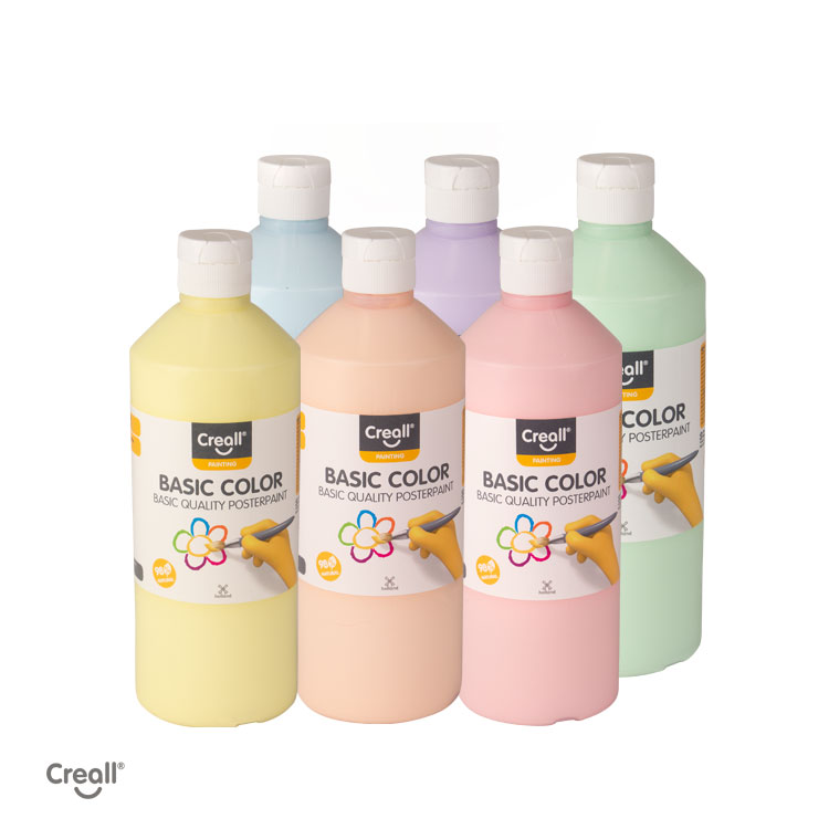 Creall Basic Color Pastel water-based poster paint offers soft pastel shades with average coverage and good adhesion to most surfaces.
