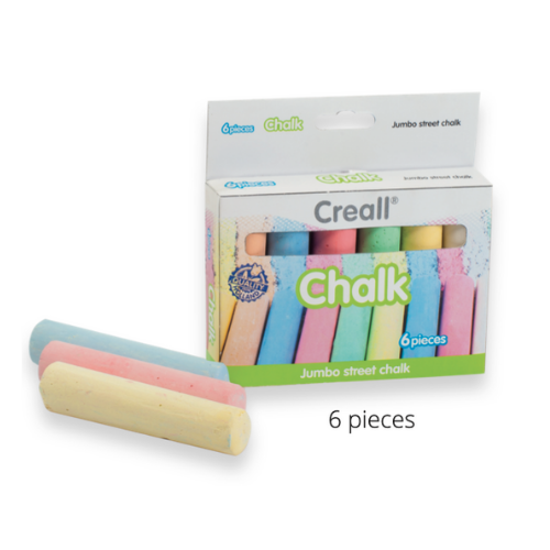 - Includes 6 jumbo chalk sticks in assorted colors