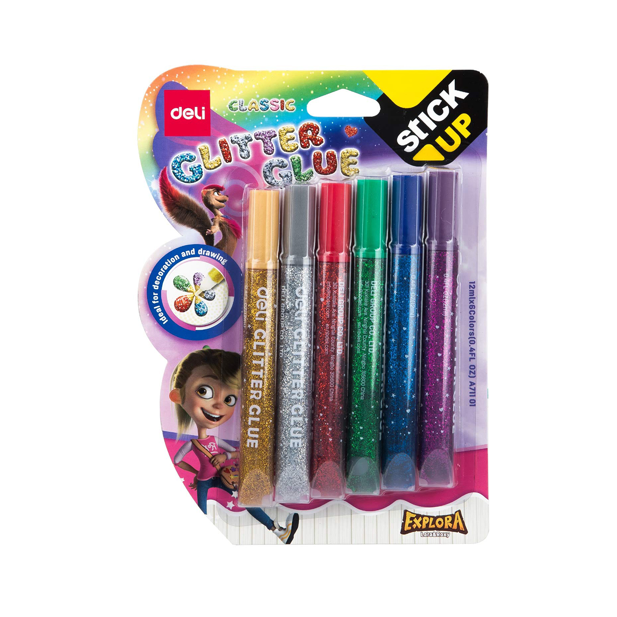 The Deli Glitter glue is a premixed blend of adhesive and glitter. It comes in a pack of six exciting and shimmering colours including gold and silver. This sparkling combination helps to limit the mess caused by sprinkling loose glitter onto glue applications, along with creating a better seal and reducing material waste.