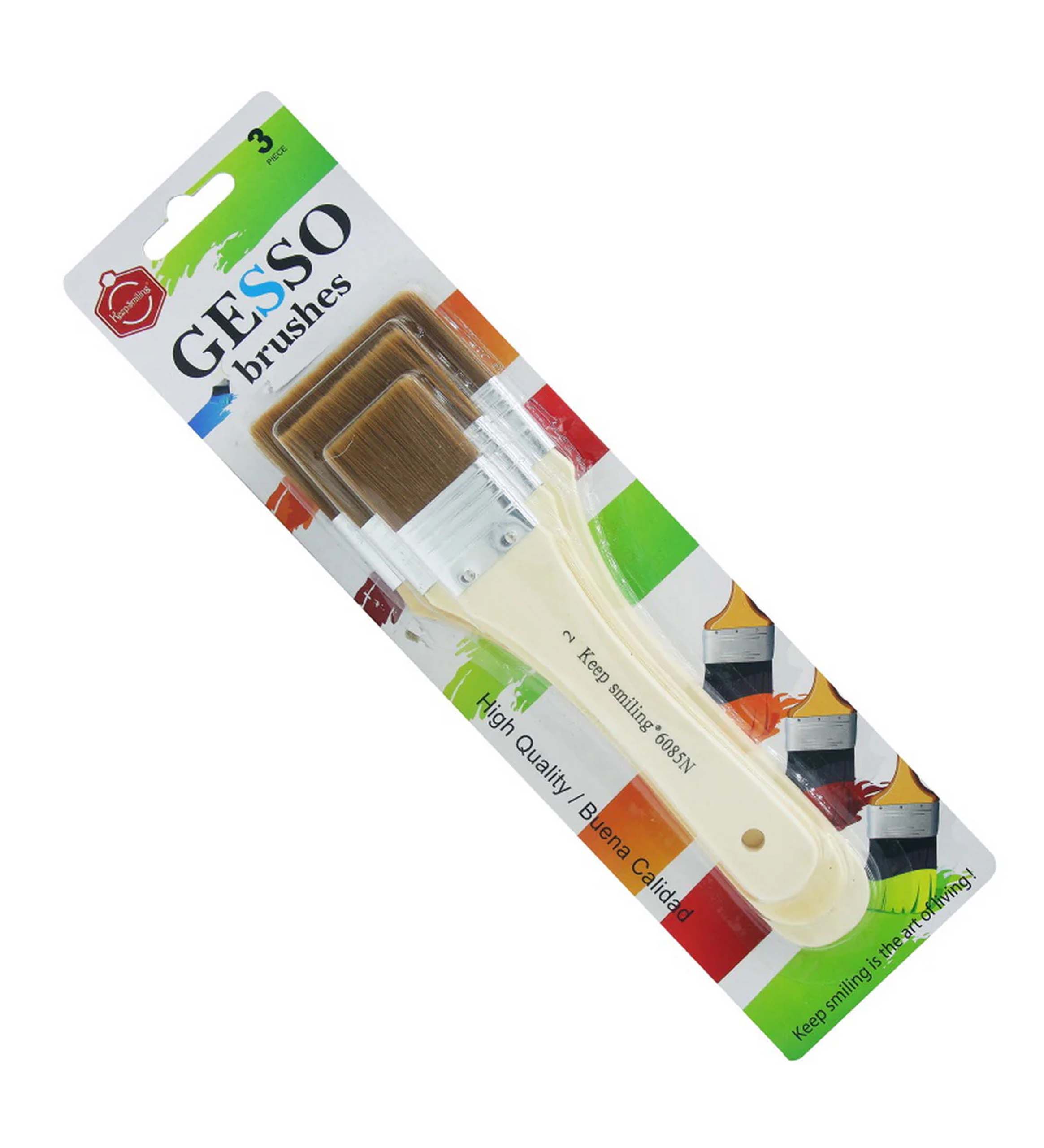 - Package Includes : 3 Gesso Brushes. Sizes 2, 4 & 6
