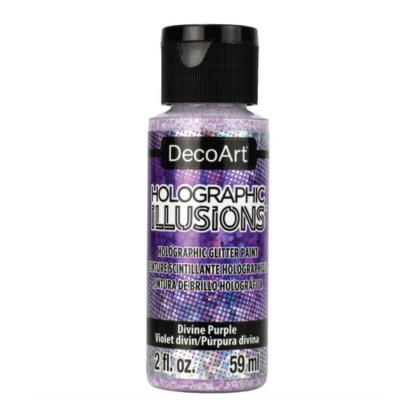 DecoArt Holographic Illusions give projects the magic of a true holographic glitter paint with a light-refracting rainbow of bold color.
