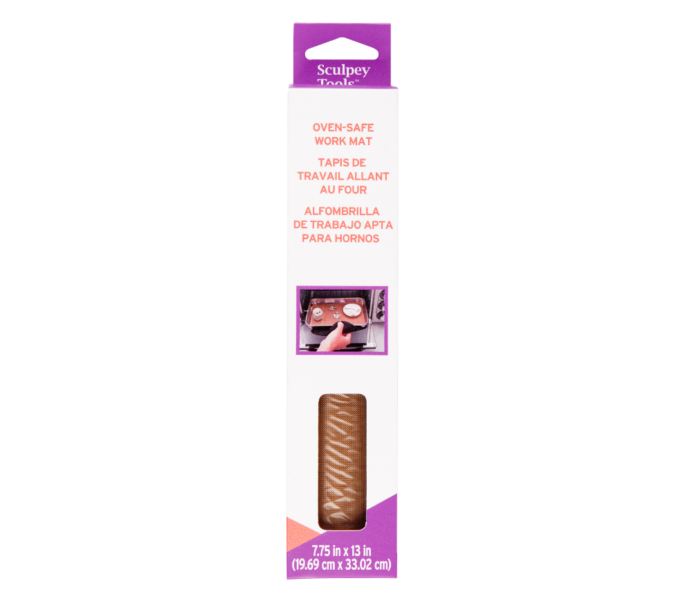 Simply roll out the Sculpey Tools Oven-Safe Work Mat onto a hard, flat surface and you’re ready to go. You can roll, mold and cut your creation all in one spot. When it’s time for curing, gently slide the mat onto a baking sheet and place it in the oven. Once you’ve finished your project, wash off the mat with soapy water and roll it back up until next time.