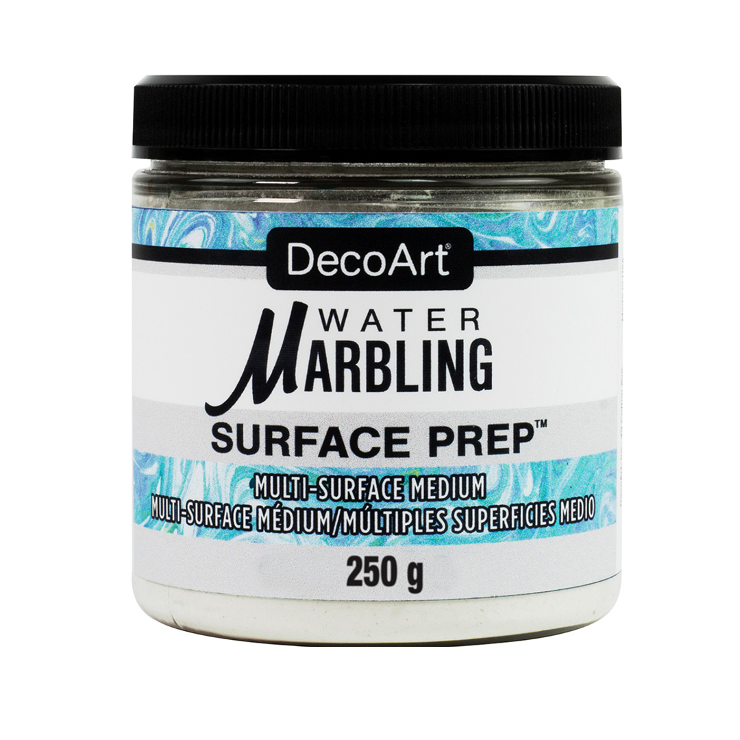 - Dissolve Marbling Surface Prep into hot water at a ratio of 1.5 tsp of surface prep to 2 cups water.