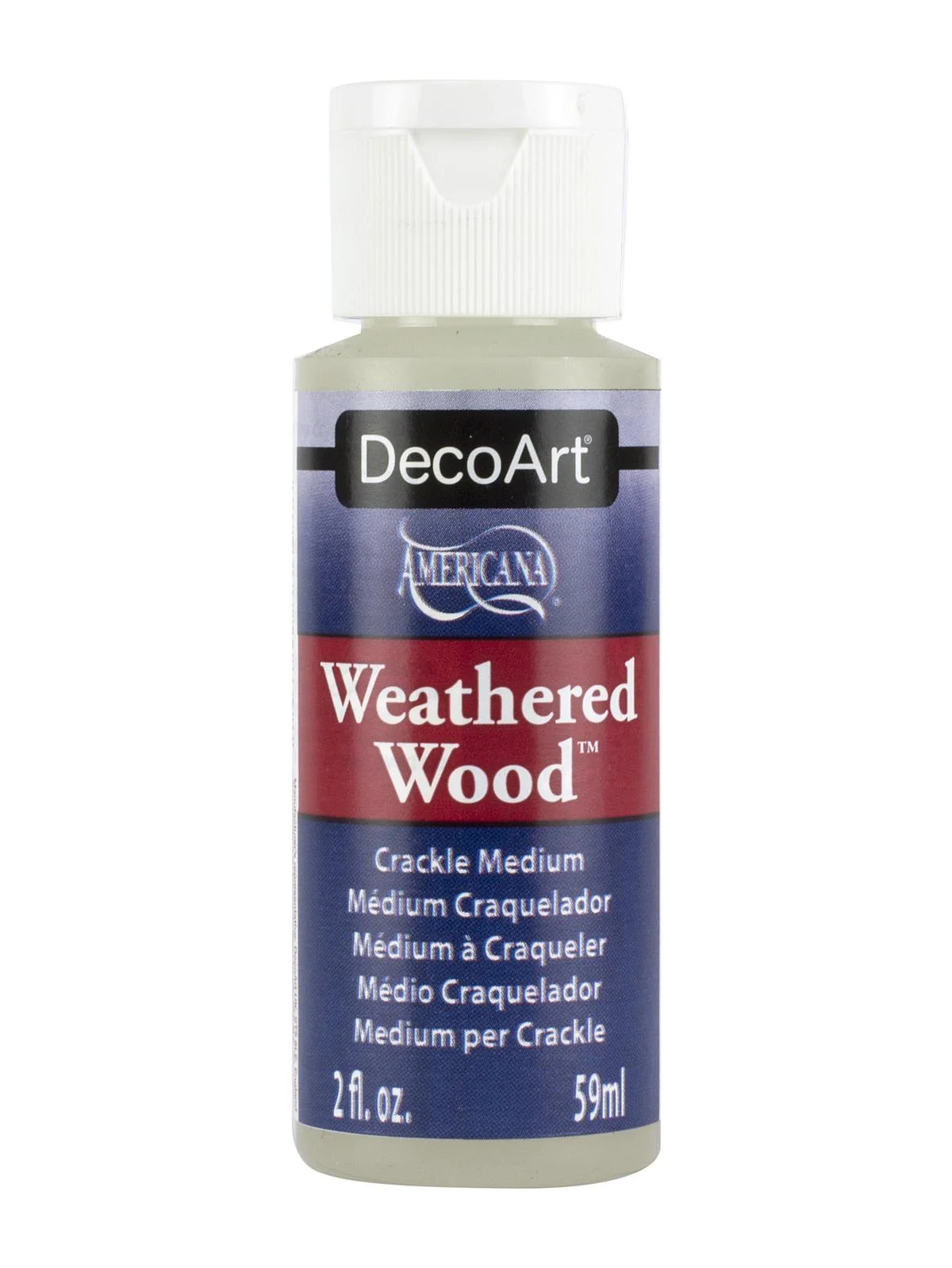 When using Weathered Wood, the thickness of the top coat will directly affect the size of the crackled finish. The heavier the top coat, the larger the cracks.