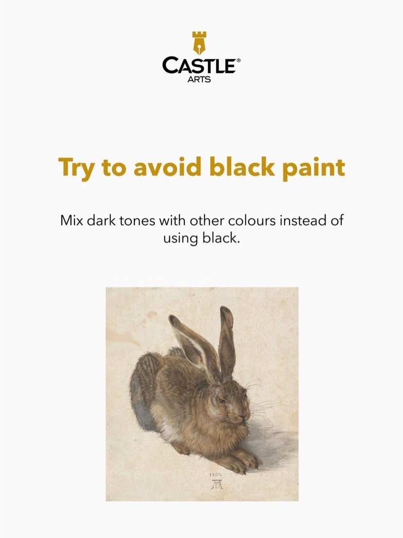 Black paint can be harsh and flat, and it often dulls the vibrancy of your other colours. Instead, mix dark tones using complementary colours like deep blues, purples, or browns. This approach keeps your painting rich and harmonious, and gives your shadows more life and depth.