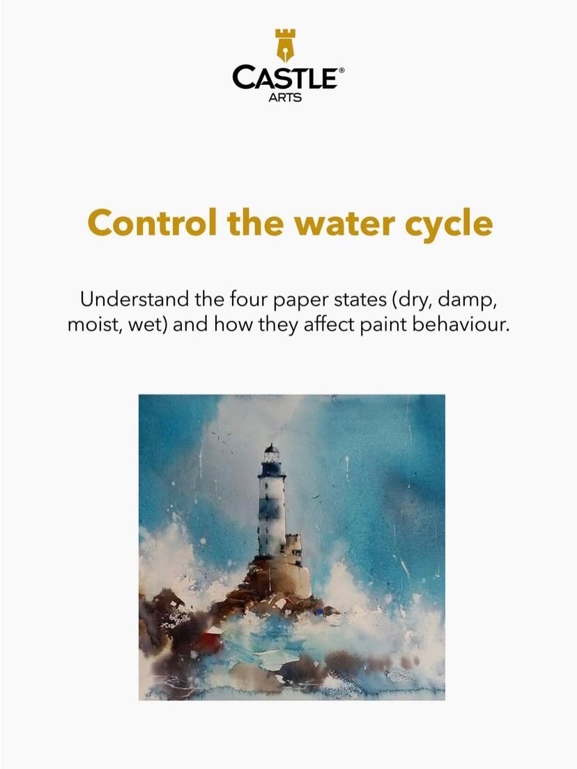 Watercolour is as much about water as it is about paint. Understanding your paper’s moisture state is crucial: